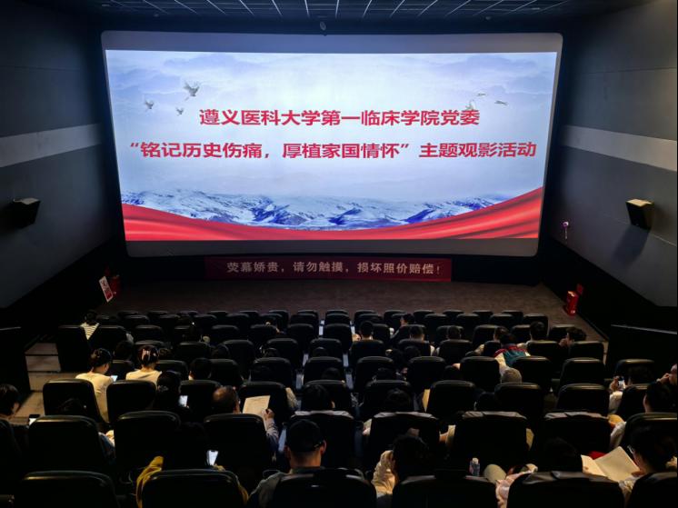 2025年9月25日16:30,遵义医科大学第一临床学院党委组织了主题为“铭记历史伤痛,厚植家国情怀”的观影活动,在遵义市汇川区昆明路世茂城4楼横店电影城,观看历史题材电影《731》。此次活动涵盖第一临床学院教工党支部,研究生党支部,本科生党支部。