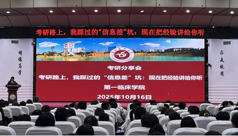 为助力学生破解考研保研中的“信息差”难题,指导学生明确学习方向与升学策略,2025年10月16日17:30,遵义医科大学第一临床学院开展了主题为考研路上,我踩过的‘信息差’坑”考研保研经验分享会,为明德、励志、娄山学生社区的医学生带来了一场兼具实用性与指导性的升学“干货”盛宴。本次分享会由第一临床学院就业办主任孙会英主持,三个学生社区约400余名医学生参加。