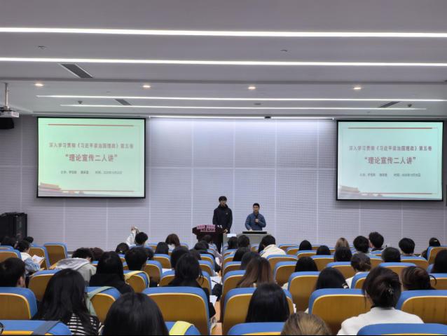 开班仪式结束后,授课教师依次为发展对象进行了授课。第一临床学院本科生第八党支部书记李恒爽与支部党员魏承意还共同进行宣讲。宣讲中,两位主讲人紧密围绕《习近平谈治国理政》第五卷的内容,以新安全格局保障新发展格局为主题,通过讲理论与实践相结合、讲道理与讲故事相贯通等方式进行理论宣传。旨在通过系统的理论讲解,使参训学员能对中国共产党有更深入、更全面的了解,中国共产党之所以能,是因为马克思主义行,中国化的马克思主义行。