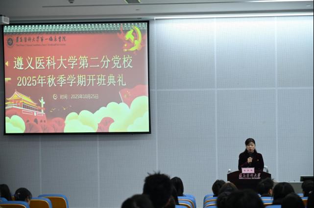 遵义医科大学第二分党校副校长、第一临床学院党委副书记杨洪艳,第一临床学院培训学员的党支部书记/副书记,分党校全体工作人员及来自第一临床学院、全科医学院和附属医院的发展对象共计127名学员参加本次培训班开班仪式。开班仪式由杨洪艳同志主持。