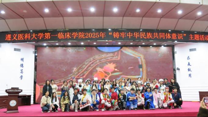 为深化青年学生对中华民族共同体意识的责任认同,激发其参与民族文化交流的自觉与热情,引导青年学子在文化互鉴中践行“各民族一家亲”理念,2025年11月15日17:30,由第一临床学院联合博爱学生社区主办的“铸牢中华民族共同体意识”主题活动,在遵义医科大学附属医院内科大楼多功能厅圆满举行。本次活动由第一临床学院2022级学生罗贤敏主持,第一临床学院和博爱学生社区师生代表共同参与。