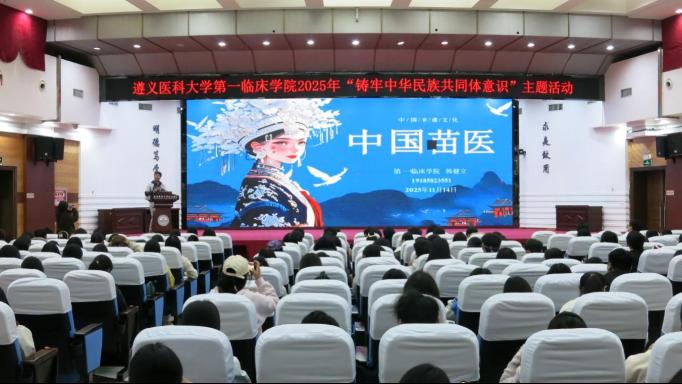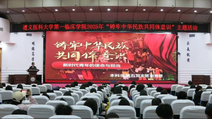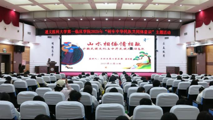 为深入贯彻新时代党的民族工作思想,扎实推进中华民族共同体意识建设,2025年11月14日下午18:30,由第一临床学院联合博爱学生社区举办的“民族同心,文化同行”主题宣讲活动,在遵义医科大学附属医院内科大楼多功能厅顺利举行。活动由2022级学生罗贤敏主持,学院和社区师生代表参与此次活动。