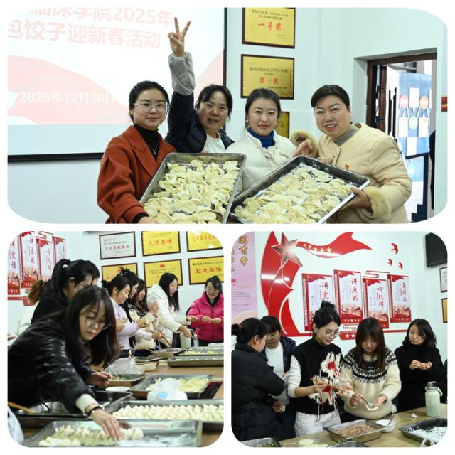 岁序更迭,华章日新。为迎接2026年的到来,2025年12月26日上午11点30分,学院在荣殿楼一楼会议室筹备了一场极具传统韵味又满含温情的迎新年包饺子活动,奏响了迎接新年的欢乐序曲。第一临床学院党委副书记、院长王东红,党委副书记杨洪艳,副院长金祝,党委委员黎飞等亲临现场,与全体老师共同参与,共享这一欢乐时刻。