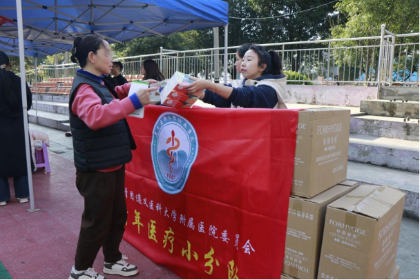 活动现场秩序井然、暖意融融。在学院老师的统筹安排下,志愿者们精神饱满、热情高涨,主动承担起引导咨询、秩序维护、物资分发等工作。他们面带微笑、耐心细致,用青春活力感染着每一位社区居民。义诊台前,来自附属医院的专家们坚守岗位、认真履职,凭借扎实的专业知识和丰富的临床经验,为社区居民提供免费问诊、健康检查、慢病指导等服务。儿科医生温柔亲切,循循善诱,耐心安抚幼儿情绪,细心引导孩子说出身体不适;呼吸内科与全科医生认真听诊、详细问诊,针对中老年常见疾病、慢病管理及日常保健给予专业指导面对居民的各类健康问题,医生们逐一细致解答,用严谨负责的态度守护群众健康,用实际行动诠释医者担当。