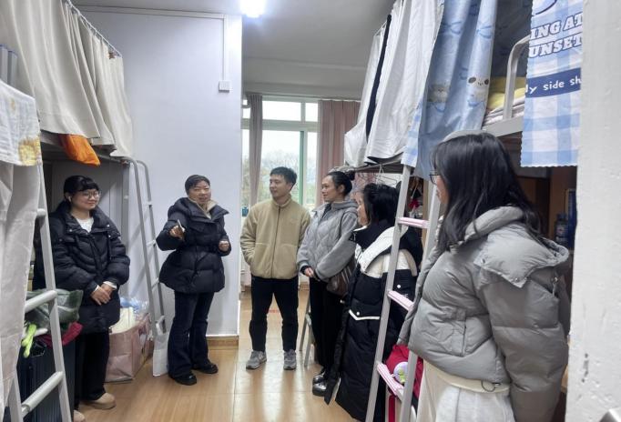 走访期间,杨洪艳一行深入学生宿舍,实地查看住宿条件、卫生环境与安全设施,细致询问同学们在饮食、通勤、生活配套等方面的实际情况,认真听取大家在期末备考、生活适应等方面的意见建议,并对相关诉求一一记录。杨洪艳鼓励同学们珍惜联合培养的学习平台,扎实学好专业知识,锻炼临床实践能力,注重身心健康发展,保持乐观进取心态,努力实现全面成长。