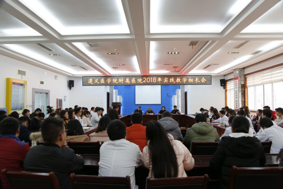 为了不断提高教学水平和质量,扎实推进临床医学专业认证工作,由第一临床学院组织的“遵义医学院附属医院2018年教学相长会”于2018年2月8日15:00在附院行政楼四楼会议室顺利召开。参加会议的有遵义医学院附属医院副院长陈琦、遵义医学院教务处处长葛正龙、第一临床学院常务副院长徐平、医学影像学院院长关晶、第一临床学院教务科工作人员、各教研室主任、副主任与教学秘书、各教学单元教学组长,以及2018年在附院实习的临床医学(含定向、卓越医生)、医学影像等专业的实习生代表共120余人。